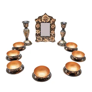 ابعاد آینه : 19x19 وزن: 280 گرم ابعاد هر شمعدان : 8x15 وزن: 120 گرم ابعاد کاسه : 5x6 وزن: 50 گرم ابعاد تابلو مقلب: 15x15 وزن : 70 گرم