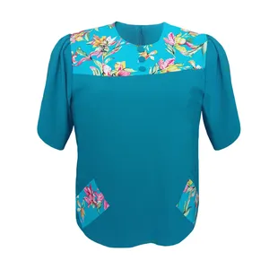 محصولی با کیفیت بالا و از جنس نخ می باشد. مدل این محصول به این صورت است که پشت کمر کشدوزی شده است و دارای یقه ی چپ و راستی و هفت و آستین های افتاده است. پارچه ی این محصول طرح دار است