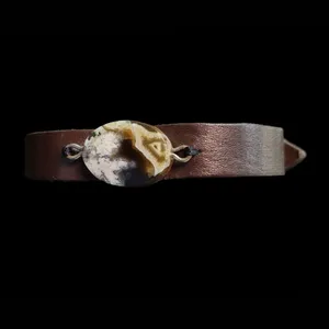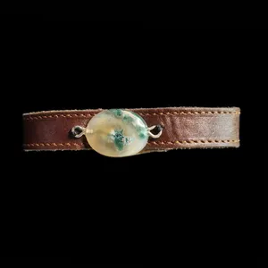 دستبند مدل چرم نگین عقیق شجر کدD4