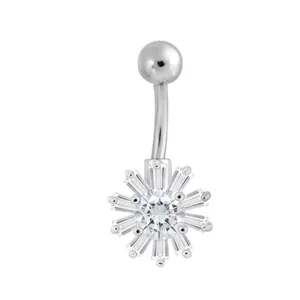 پیرسینگ ناف اقلیمه کد HS42 از جنس استیل نقره ای دارای پلاک نگین دار بلند به ارتفاع کلی 5،8 سانتیمتر می باشد و قطر گل اول 1،3 سانتمیتر و گل دوم 1 سانتیمتر است. پیرسینگ از قسمت گوی کوچک به قطر 0،5 سانتیمتر بصورت پیچی باز می شود.این پیرسینگ از جنس استیل با کیفیت ساخته شده. نگین های درخشان و بلندی پیرسینگ زیبایی آن را دو چندان کرده و نظر ها را به سمت خود جلب می نماید.