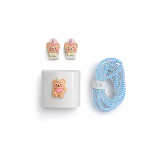 کریستالی ژله ای - 5 تکه محافظ سیم شارژر محافظ شری کابل 2تکه محافظ سری شارژرو کلگی سیم جمع کن مناسب شارژر ایفون 20 وات 3 پین