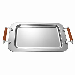 این سینی از استیل نگیر ضد زنگ (بهترین مدل استیل که آهنربا آنرا نمیگیرد) با دسته و پایه های چوب طبیعی در دو رنگ و چند سایز و مدل ساخته شده است