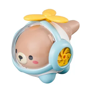 سر عروسک را به پایین فشار دهید شروع به حرکت می کند پشت هواپیما سوت هست که کودک می تواند با فوت کردن صدای سوت بشنود