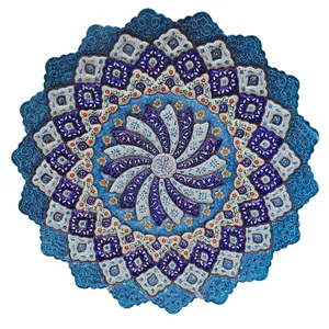 بشقاب مس میناکاری , صفر تا صد محصول ، هنر دست هنرمندان ایرانی می باشد. جنس بدنه زیرکار از مس بوده و با رنگ میناکاری تزیین و در کوره بالای هزار درجه سانتیگراد پخت شده است و رنگ ثابتی دارد.