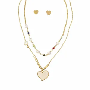 ست گردنبند و گوشواره دست ساز مدل فیمو و آویز قلب