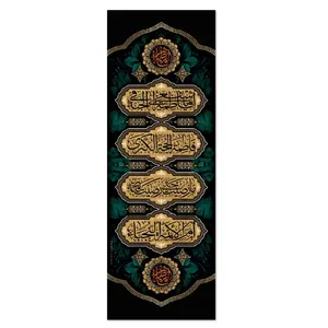 جنس این کتیبه از مخمل فاخر صادراتی است و فناوری چاپ سابلیمیشن می باشد رنگ‌های استفاده شده در پرچم بسیار با کیفیت و وضوح بسیار بالا می باشد (شارپ) و، شست وشوی این محصول به لحاظ کیفیت بالای چاپ و استفاده از رنگ های مرغوب کاملا تضمین شده بدون آبرفتگی و تغییر رنگ می باشد. جهت زیبایی بیشتر ریشه افشان 7 سانتی ریشه دوزی شده است. دارای بندک جهت نصب آسان. مناسب برای استفاده داخل منزل، مساجد، حسینیه ها و همچنین فضای باز می‌باشد.