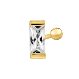 پیرسینگ گوش اقلیمه کد HS101 از جنس استیل طلایی با پلاکی نگین دار به ابعاد 1 در 0.4 سانتیمتر می باشد. طول میله پشت آن0.7 سانتیمتر است . پیرسینگ از قسمت گوی انتهایی بصورت پیچی باز شده و پس از عبور میله از سوراخ گوش مجدداً بسته می شود. این پیرسینگ از جنس استیل با کیفیت ساخته شده است و بخاطر انتهای گرد و کوتاه آن در انواع قسمت های غضروف گوش قابل استفاده می باشد.