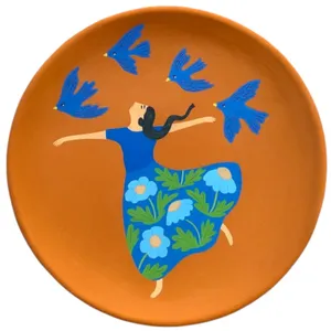 این دیوارکوب با قطر 25 سانتیمتر و تماماً نقاشی هنر دست روی سفال و قابل نصب روی دیوار می باشد. با توجه به اینکه این اثر هنر دست است ممکن است تفاوت بسیار جزئی با تصویر داشته باشد