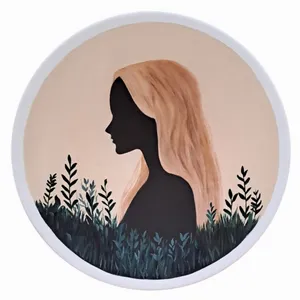 دیوارکوب با قطر 20 سانتیمتر قابل نصب روی دیوار نقاشی روی سفال هنر دست دارای لایه محافظ ضد آب قابل گردگیری با پارچه نمدار