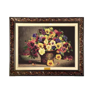 تابلو فرش ماشینی نقش نگار رضوی طرح گل کد 2476D