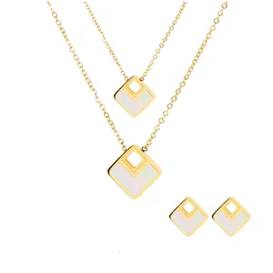 نیم ست استیل کد NS183 از برند اقلیمه به رنگ طلایی شامل دو مربع چسبیده به هم به طول 2 سانتیمتر و یک پلاک مربع نگین دار به طول 1،4 سانتیمتر می باشد. سایز زنجیر 46 سانتیمتر بوده و هریک از گوشواره ها 0،8 سانتیمتر طول دارند. این نیم ست با طراحی زیبا و قرار گرفتن صدف طبیعی در کنار رنگ طلایی فلز استیل انتخابی مناسب برای خانم ها می باشد.