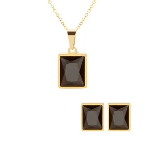 نیم ست استیل کد NS218 از برند اقلیمه به رنگ طلایی شامل پلاک مربع با میناکاری مشکی به طول 0،8 سانتیمتر و پلاک مربع توخالی به طول 1 سانتیمتر می باشد. سایز زنجیر کوتاه تر 45 سانتیمتر و زنجیر بلند 51 سانتیمتر بوده و گوشواره این نیم ست 0،8 سانتیمتر طول دارد. این نیم ست با دو زنجیر به زیبایی روی گردن قرار می گیرد و قرار گرفتن مینا کاری مشکی در کنار رنگ طلایی استیل جلوه زیبایی به آن بخشیده است.