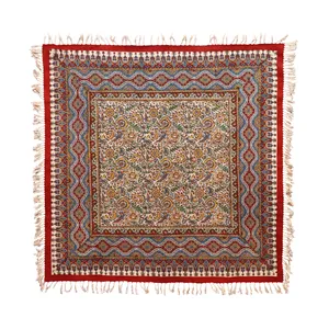 سایز این رومیزی قلمکار 100در 100 و صد در صد نخ و چلوار با قابلیت شست و شو با ماشین لباسشویی دارد و رنگ آن کاملا ثابت است. این پارچه قلمکار با استفاده از مهر های دست ساز و رنگ گیاهی و طبیعی ساخته شده است و از صنایع دستی اصیل اصفهان میباشد.