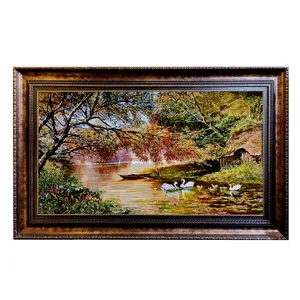 تابلو فرش ماشینی طرح دستبافت مدل روستا کد 8480