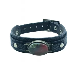 دستبند مردانه مدل سنگ لارویکیت و چرم