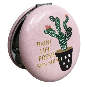 آینه جیبی مدل گرد طرح کاکتوس های شاد