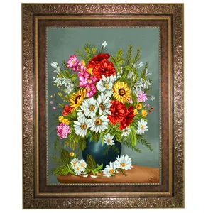 تابلو فرش ماشینی نقش نگار رضوی طرح گل کد 428A