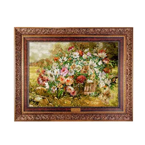 هنر تزیینات داخلی باعث زیبایی و شیک بودن منازل میشود. تزیینات داخلی با قاب و تابلو راحتترین راه زیباسازی منازل و دفاتر کار است. تابلو فرش در بین قابها و تابلوها از طرفداران بیشتری برخورداراست چون علاوه بر قیمت مناسب، ریشه در فرهنگ و سنت ایرانی نیز دارد و بهترین نوع آن در کشور ایران تولید میشود تابلوفرشهادوگونه هستند: دستی و ماشینی. تابلو فرش دستی که توسط هنرمندان ایرانی بافته میشود محصولی گرانبها و ماندگار است. گونه دیگرتابلوفرش ماشینی است که ازلحاظ قیمت مناسب است ولی به علت محدودیت رنگ «هشت رنگ» جلوه و زیبایی خاصی ندارد. نقش نگار رضوی اولین تولیدکننده نسل جدید تابلو فرشهای ماشینی با طرحهای دستی است که با توجه به فنّاوری روز دنیا توان تولید تابلو فرش ماشینی با هزاران رنگ را داراست. تابلو فرشهای این مجموعه 1200 شانه با تراکم 3600 است. جنس تابلو فرشها ابریشم مصنوعی «پلیاستر» است. تمام طرحهای تابلو فرش دستی با همان کیفیت روی تابلو فرش ماشینی با هزینهای مناسب در دسترس شما است. سایز تابلو فرشها 50×100 است که با قاب به سایز 70×120 تبدیل میشود. جنس قابها «pvc» است. طرح گل و یا سبد گل در میان تابلو فرشها بسیار پرطرفدار است شاید دلیل آن علاقه عموم مردم به گل و منظرههای واقعی باشد کیفیت در این تابلو فرش بسیار مشابه چلِ ابریشم دستباف است و این تابلو برای سالن پذیرایی یا ورودی منزل پیشنهاد میشود.