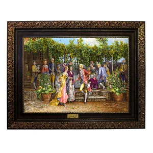 هنر تزیینات داخلی باعث زیبایی و شیک بودن منازل میشود. تزیینات داخلی با قاب و تابلو راحتترین راه زیباسازی منازل و دفاتر کار است. تابلو فرش در بین قابها و تابلوها از طرفداران بیشتری برخورداراست چون علاوه بر قیمت مناسب، ریشه در فرهنگ و سنت ایرانی نیز دارد و بهترین نوع آن در کشور ایران تولید میشود تابلوفرشهادوگونه هستند: دستی و ماشینی. تابلو فرش دستی که توسط هنرمندان ایرانی بافته میشود محصولی گرانبها و ماندگار است. گونه دیگرتابلوفرش ماشینی است که ازلحاظ قیمت مناسب است ولی به علت محدودیت رنگ «هشت رنگ» جلوه و زیبایی خاصی ندارد. نقش نگار رضوی اولین تولیدکننده نسل جدید تابلو فرشهای ماشینی با طرحهای دستی است که با توجه به فنّاوری روز دنیا توان تولید تابلو فرش ماشینی با هزاران رنگ را داراست. تابلو فرشهای این مجموعه 1200 شانه با تراکم 3600 است. جنس تابلو فرشها ابریشم مصنوعی «پلیاستر» است. تمام طرحهای تابلو فرش دستی با همان کیفیت روی تابلو فرش ماشینی با هزینهای مناسب در دسترس شما است. سایز تابلو فرشها 50×100 است که با قاب به سایز 70×120 تبدیل میشود. جنس قابها «pvc» است. طرح فرانسوی از زیباترین طرحهای تابلو فرش بوده که علاوه بر داخل در خارج از کشور نیز طرفداران خاصی دارد تنوع رنگ روح زندگی حرف اول را در اینگونه طرحها میزند. این طرح برای سالن پذیرایی توصیه میشود.
