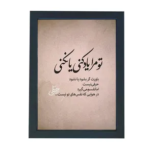 یکی از وسایل تزیینی که به راحتی میتواند حس و حال و فضای داخلی منزل و یا محل کار شما را تغییر دهد و به محیط زندگی شما روح ببخشد,تابلو عکس نوشته میباشد.سعی ما بر این است که با طراحی و ساخت انواع تابلوها متناسب با سلیقه ی شما ، به داشتن محیطی فانتزی متناسب با روحیتان به شما کمک کنیم. مطمئناً دادن هدیه به عزیزان و نزدیکان یکی از لذتبخشترین کارهای دنیاست، این قاب عکس همچنین میتواند هدیه و سورپرایزی برای نزدیکان شما باشد. این قاب عکس در سایزهای مختلف استاندارد و با جنس PVC تولید شده است. این قاب عکس دیواری بوده و توجه داشته باشید ، این قاب عکس توسط تیم گالری چهره پرداز رخ طراحی شده، تمامی حقوق برای گالری چهره پرداز محفوظ است و هرگونه کپی برداری از آثار این مجموعه پیگرد قانونی دارد ، خریداران توجه داشته باشند تمامی قاب ها باید دارای آرم گالری چهره پرداز رخ باشند، قاب های ارسالی که فاقد آرم گالری چهره پرداز رخ باشند به معنای اصیل نبودن کالای خریداری شده میباشد. همچنین شما میتوانید کالاهای خود را به صورت سفارشی سازی شده با « عکس و متن دلخواه خود » از سایت اصلی « گالری چهره پرداز رخ » خریداری کنید.