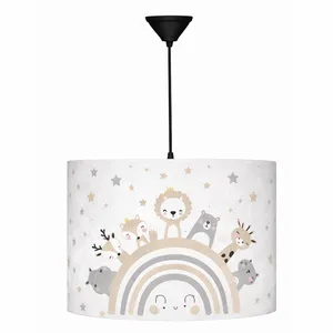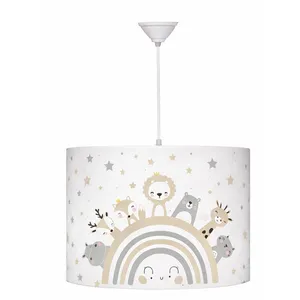 لوستر سقفی کودک با جنس کلاهک مخملی بوده . جنس بدنه پایه تمام پارچه به همراه طلق و فلز برای استحکام میباشد و رنگ آن ثابت میماند . سرپیچ آن E27 بوده و نور کافی برای زمان خواب کودک در فضا پخش میکند . محصول بدون لامپ میباشد
