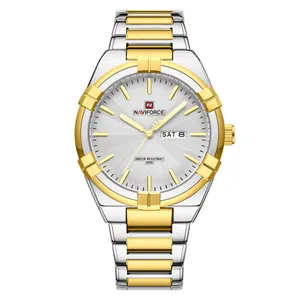 ساعت مچی مردانه نیوی فورس NAVIFORCE مدل NF9213می باشد. کسانی که ساعت مچی اورجینال با قیمت مناسب و با دوام و کیفیت بالا می خواهند NAVIFORCE یک انتخاب عالی محسوب می شود. این ساعت با طراحی کلاسیک ، بند استیل میباشد. ساعت های نیوی فورس محصول اورجینال هستند که موتور کوارتز ساخت ژاپن با کیفیت عالی دارند. دارای بند استیل,ضد حساسیت رنگ ثابت با شیشه معدنی مقاوم در برابر خش که در این چند سال خیلی توانسته در دل مردم جا باز کند. ساعت های نیوی فورس ظاهر جذاب و اسپرتی دارند