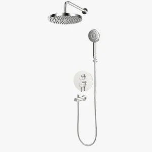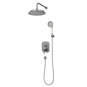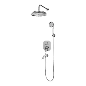 این محصول شیر دوش توکار تیپ 3 میباشد سایز شلنگ دوش 150 سانتیمتر و سایز بازویی سر دوش سقفی 36 سانتیمتر و سایز سردوش ثابت به قطر 25سانتیمتر و سایز سردوش سیار به قطر 10سانتیمتر است و سایز باکس داخل دیوار طول 17.5و عرض 13.5و عمق 6.5 سانتیمر است