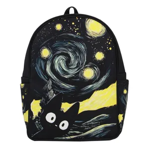 کوله پشتی طرح شب پرستاره کد ونگوگ3 به همراه دفتر مشق و جامدادی و زیر لیوانی و جاکلیدی مجموعه 12 عددی