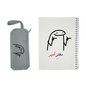 دفتر طراحی شده با نام شما در کنار یک جامدادی پارچه ای با طرح مشابه جامدادی پارچه ای با کیفیت دارای رنگ ثابت مناسب جهت هدیه به دوستان با نام ایشان