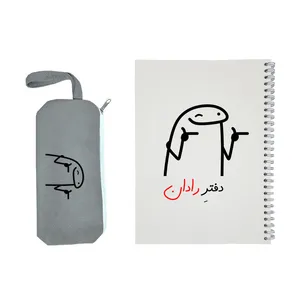 دفتر طراحی شده با نام شما در کنار یک جامدادی پارچه ای با طرح مشابه جامدادی پارچه ای با کیفیت دارای رنگ ثابت مناسب جهت هدیه به دوستان با نام ایشان