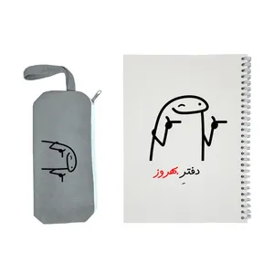 دفتر طراحی شده با نام شما در کنار یک جامدادی پارچه ای با طرح مشابه جامدادی پارچه ای با کیفیت دارای رنگ ثابت مناسب جهت هدیه به دوستان با نام ایشان