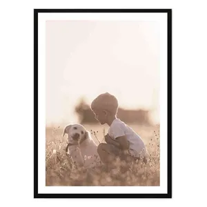 تابلو مدل منظره طرح کودک و حیوان خانگی اش
