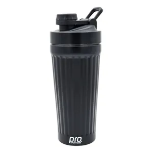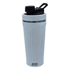 شیکر یکی از مهمترین و ضروری ترین ملزومات بدنسازی می باشد با تکان دادن آنها به راحتی می توان مکمل های ورزشی را برای قبل و بعد از تمرین آماده کرد. شيکر ورزشی پرو اسپرتز مدل CY201 یک شیکر خاص و کاربردی از جنس استیل می باشد که بسیار بادوام، مقاوم در برابر ضربه، ضد بو و ضد زنگ است. استیل بودن آن، امکان استفاده از آن را برای نوشیدنی های گرم نیز فراهم می کند و تا حدی قابلیت حفظ دما را نیز دارد.این شیکر دارای یک گوی فنری است که نقش همزن و میکس کننده ی مکمل ها را درون مایعات به عهده دارد. محل خروج مایعات این محصول به صورت ضامنی باز و بسته می شود و با توجه به طراحی که دارد، کاملاً ضد نشتی می باشد و شما می توانید شیکر را با خیال راحت در ساک ورزشی خود حمل کنید و استفاده نمایید.بر روی بدنه ی شيکر ورزشی پرو اسپرتز مدل CY201 شاهد درجه بندی هایی هستیم که کار با این شیکر را راحت تر و دقیق تر کرده است. درپوش پلاستیکی این قمقمه که به صورت پیچی باز و بسته می شود. نوع خروج آب و دهانهی لولهای، امکان نوشیدن آب را آسانتر کرده است. این محصول دارای ابعاد 9 × 18 سانتیمتر است و وزنی معادل 280 گرم دارد. گنجایش آن 591 سی سی است که کاملاً مناسب با نیازهای ورزشکاران حرفه ای می باشدساختار این محصول به صورت دو تکه می باشد. دارای یک قسمت مجزا در بخش انتهایی بوده که به لطف آن میتوانید قرص، پودر و مکمل ها را با خود به همراه داشته باشید. از طرف دیگر از این بخش میتوانید به عنوان لیوان نیز استفاده کنید. از این شیکر علاوه بر باشگاه برای سفر و کمپینگ نیز قابل استفاده و مناسب است.