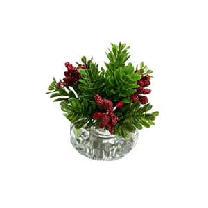 گلدان پلاستیکی دکوری-تزئینی با گل میوه کاج مناسب برای زیبا سازی منازل ، محل کار ، ادارات ، کافه ها ، رستوران ها و هدیه مناسب برای روز تولد ، سالروز ازدواج و همچنین برای روز مادر