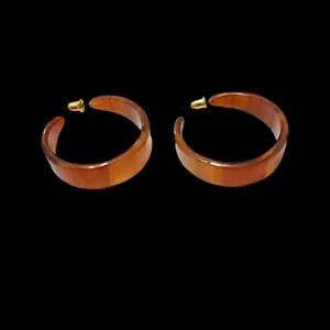 یک جفت گوشواره شیشه ای طرح اشک تو خالی با آویز طلایی
