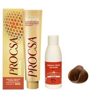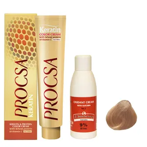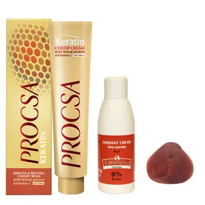 رنگ موی پروکسا شامل 110 رنگ جذاب و متنوع در 25 گروه رنگی می باشد.رنگ موی پروکسا با دوام و ثبات بالا، درخشندگی، نرمی و لطافتی مناسب به مو می بخشد.این رنگ با فرمولاسیون ویژه و با غلظتی بالا بوده و از ویژگیهای آن استفاده از پروتئین گندم، ویتامین C و کراتین در فرمولاسیون رنگ مو می باشد.پروتئین گندم باعث تقویت و حالت پذیری مو می شود و ویتامین C نیز جریان خون را در پوست سر بهبود بخشیده و از دیواره مویرگهای خونی که خون را به فولیکول های مو می رسانند، حفاظت کرده و از ریزش مو جلوگیری می کند.وجود کراتین نیز موجب تقویت مو های آسیب دیده می شود.
