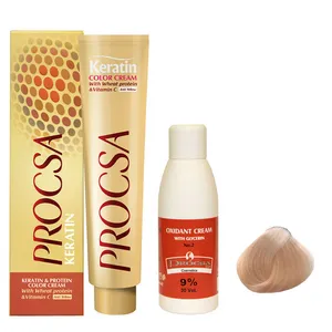 کیت رنگ مو پروکسا سری Natural Gold شماره 10.03 حجم 100 میلی لیتر رنگ بلوند طبیعی طلایی بسیار روشن به همراه اکسیدان مدل گلیسیرینه 9 درصدی حجم 120 میلی لیتر