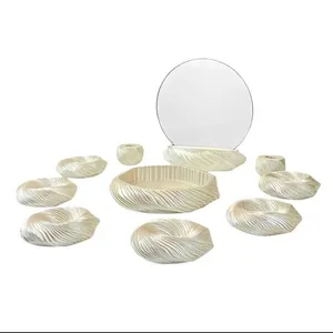 سفره هفت سین بیضی/ قطر آینه:18x30 سانتی متر/ قطر ظرف وسط:20x12/ 6 عدد ظروف همراه به قطر9x15/ جنس تمامی محصولات ام دی اف و نخ تریکو