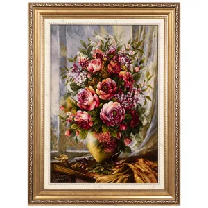 تابلو فرش دستبافت فرش رضا ترکمنی طرح گل رز مدل 98