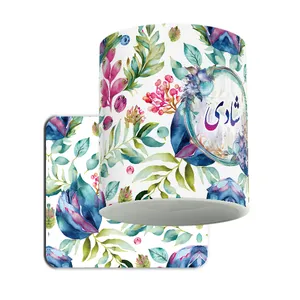 ماگ لاژید مدل اسم مهرنوش طرح گلدار به همراه زیرلیوانی