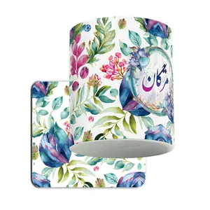 ماگ لاژید مدل اسم مهری طرح گلدار به همراه زیرلیوانی
