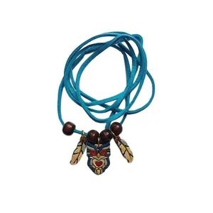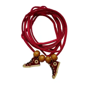 جنس مهره و آویزها چوبی است و مدل بسته شدن دستبند گره ای.