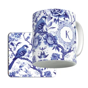 ماگ لاژید مدل حرف R طرح نقاشی آبرنگ به همراه زیرلیوانی