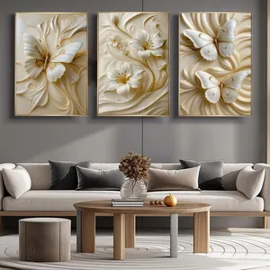 تابلو آتریسا طرح پروانه و گل مدرن مدل AT00669 مجموعه 3 عددی