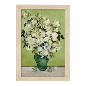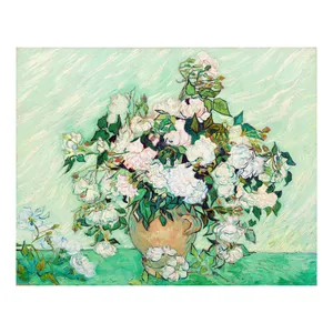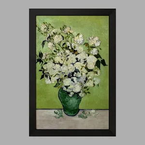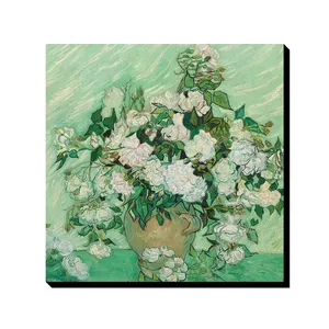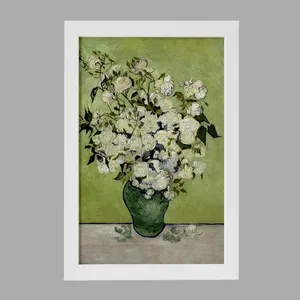 تابلو مدل ون گوگ گلهای سفید در یک ظرف سبز