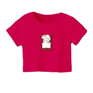 کراپ تیشرت آستین کوتاه زنانه مدل گربه کد 21