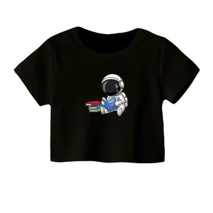 کراپ تیشرت آستین کوتاه زنانه مدل فضانورد و لپ تاپ