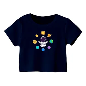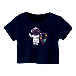 کراپ تیشرت آستین کوتاه زنانه مدل فضانورد کد 3 رنگ سرمه ای