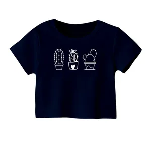 کراپ تیشرت آستین کوتاه زنانه مدل کاکتوس کد 2 رنگ سرمه ای