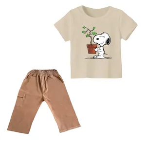 ست تی شرت و شلوارک پسرانه مدل اسنوپی کد 67 رنگ کرم